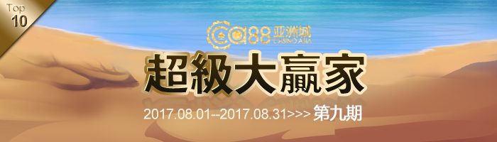 超级大赢家 2017-08-04 • 超级大赢家 • 43 条评论 超级大赢家出刊至今,越来越多人挤入大赢家这个 队伍,那也证明越来越多的玩家在我们亚洲城找到了方法,获得了益处。当然每次发刊不乏有人质疑,其实小亚想说的是,若是意见,我们采纳完善,并真心感谢;但是那些故意抹黑的省点力气,我们大赢家只说真话,因为信的人就在那里,上榜的人也在那里。接下来是他们的主场,看看七月TOP10.怎么