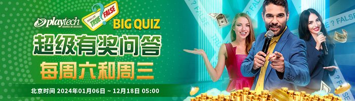 PT 超级有奖问答 2024-01-03 • 网站公告 • 0 条评论 条款和条件 Live Trivia游戏(“游戏”)促销活动将于北京时间2024年1月6日至2024年12月18日的每周六和每周三 05:00进行(“促销期”)。 促销期间将进行100场游戏,玩家有机会赢得每场$2,000现金奖的份额。 在促销期间,将根据以下时间表在每天的特定时间进行游戏。 游戏是一个真人游戏节目,由现