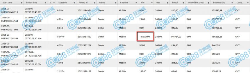 超级大赢家 2025-09-05 • 超级大赢家 • 0 条评论 超级大赢家出炉喽~快来观摩谁的单局盈利最高吧 【游戏总盈利 63 万】 游戏时间:2025年09月5日 奖金种类:超高倍赔彩 游戏名称:柬埔寨 PNG 平台—Gemix 《五彩宝石》 奖金数额:489,600 和 147,024 获奖情节: