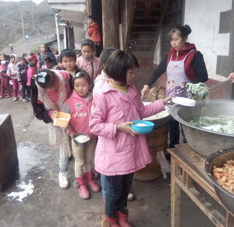 孩子们在“食堂”排队吃饭的模样,吃着白水煮青菜的你们,营养能跟的上你们的成长吗?