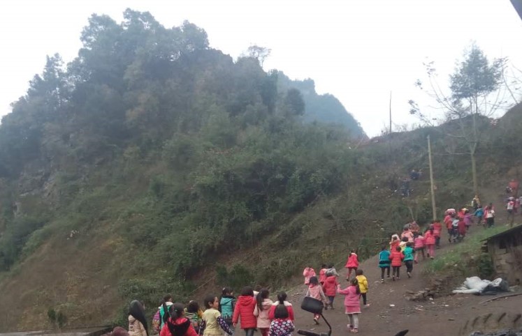 孩子们下课回家的模样,那一座座高山,徒步而行的你们身体一定很健康吧。