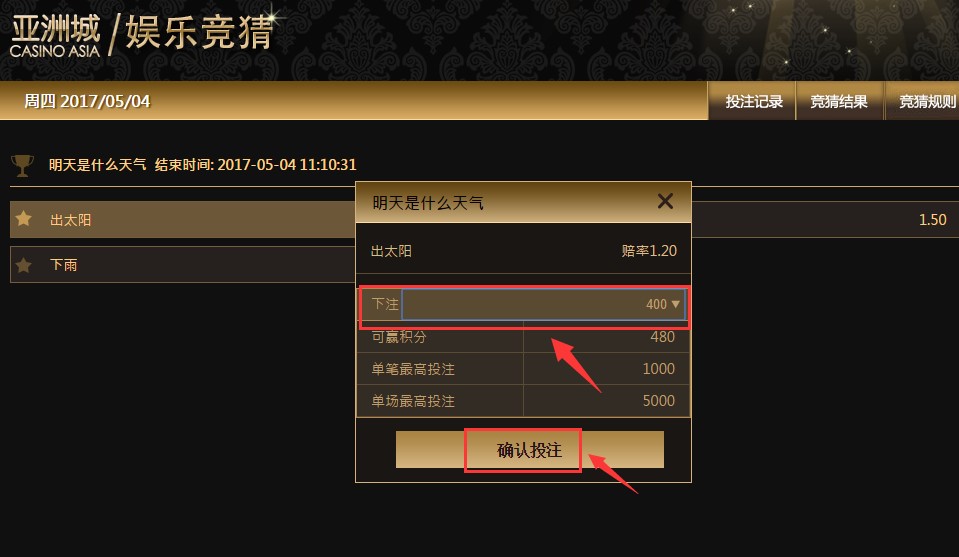 ③点击您选择的竞猜选项→选择下注积分→点击“确认投注”