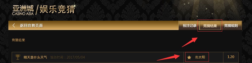 ⑤当竞猜结束答案公布后您点击“竞猜结果”就能看到正确答案啦