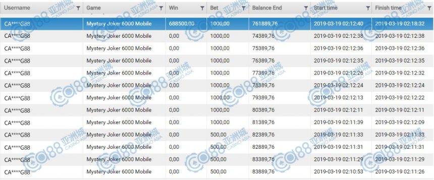 获奖情节:来自山东的李先生在《神秘小丑6000》早先以500元投注,在2点12分,凭多年的打虎经验以1000元全押,不出10分钟转出3个神秘小丑轻轻地把68万带走,位列NO.3。如果您相信自己,然后再加上一点点运气,那您所有梦想就都能实现。