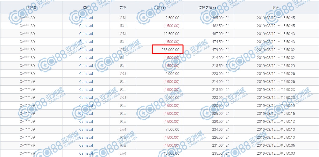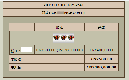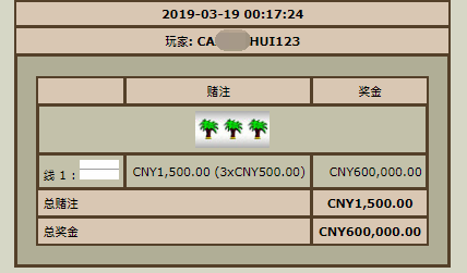 获奖情节:最后一位就是来自海南的栗先生以4500元全押,收获26万元并登上最后一位3月超级大赢家宝座。