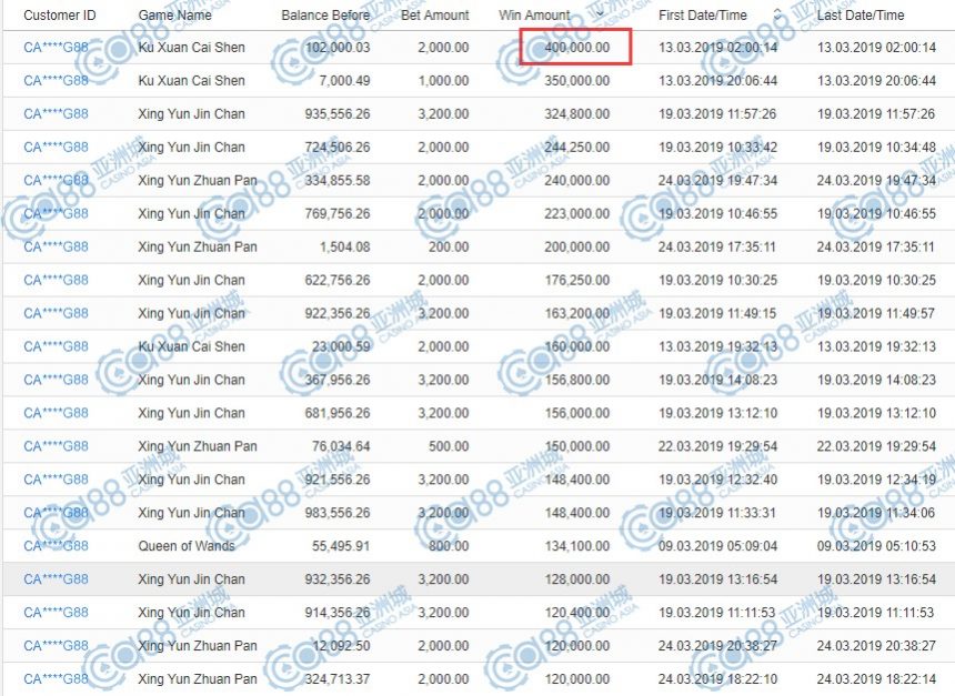 获奖情节:来自江苏的张先生,在PT热门老虎机游戏《古怪猴子》中,以500元单局投注转出3个鼓,按照赔率500*800喜获40万,超级大赢家位列第7。