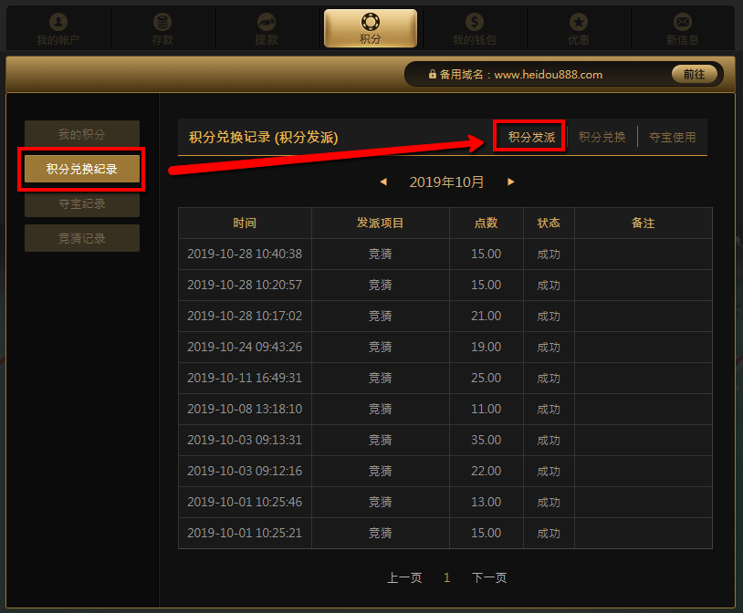 亲,除了投注额换积分外,您也可多多参加活动与竞猜换取积分!