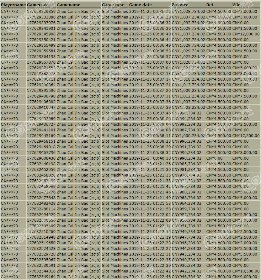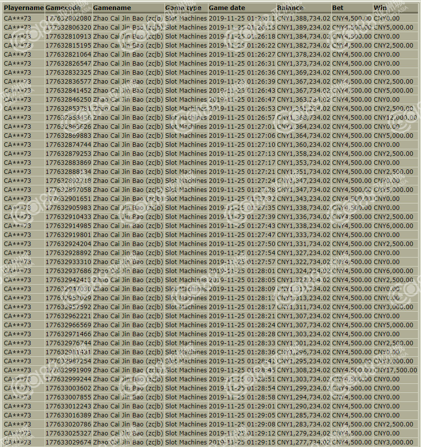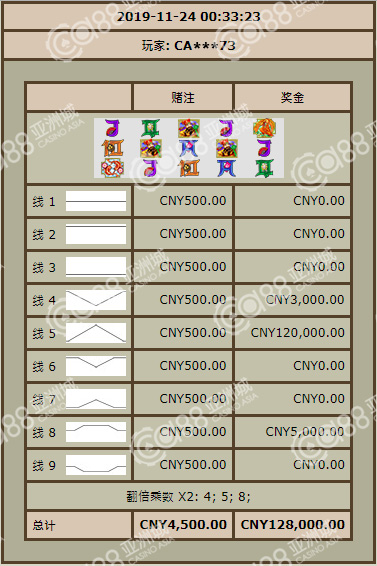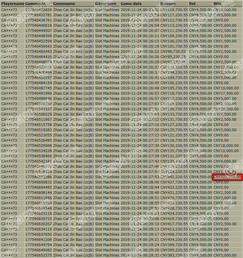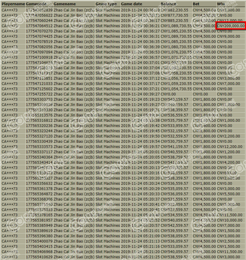 再来看到这次玩家的获奖资讯,最令小亚感到佩服的是玩家在刚开始游戏之时,本金只有几千的状况下,仍以每注几百元不等的金额投注,虽说这注额有大有小,但玩家是真以拼了的心情下与财神爷爷博一回的!