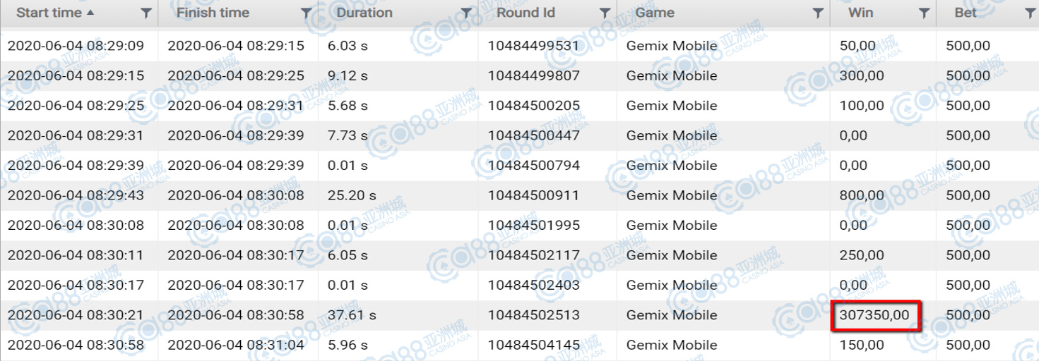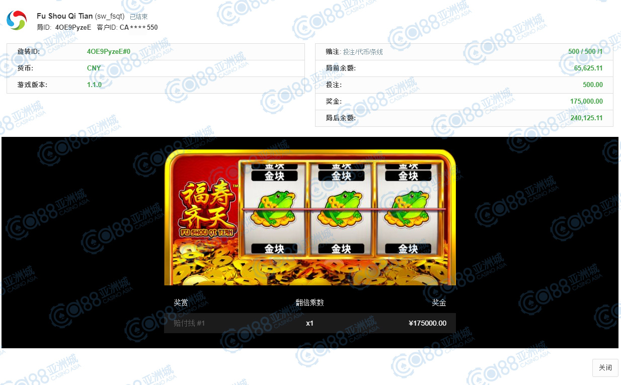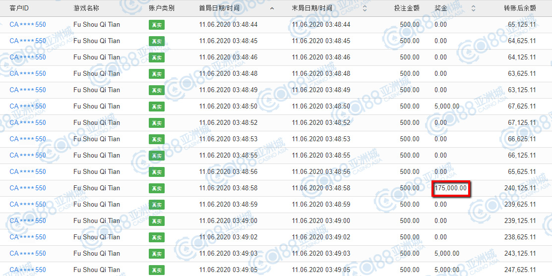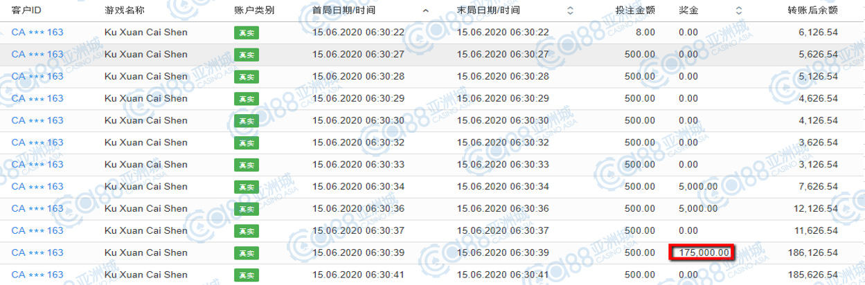 获奖情节: 时光飞逝,最后来到第十名的位子,中奖金额与第九名齐名,都是很有福气来着,小亚想着这出奖率高的游戏,不只是热门游戏,也是小伙伴的心头好,才能一直转到高额奖金呀。