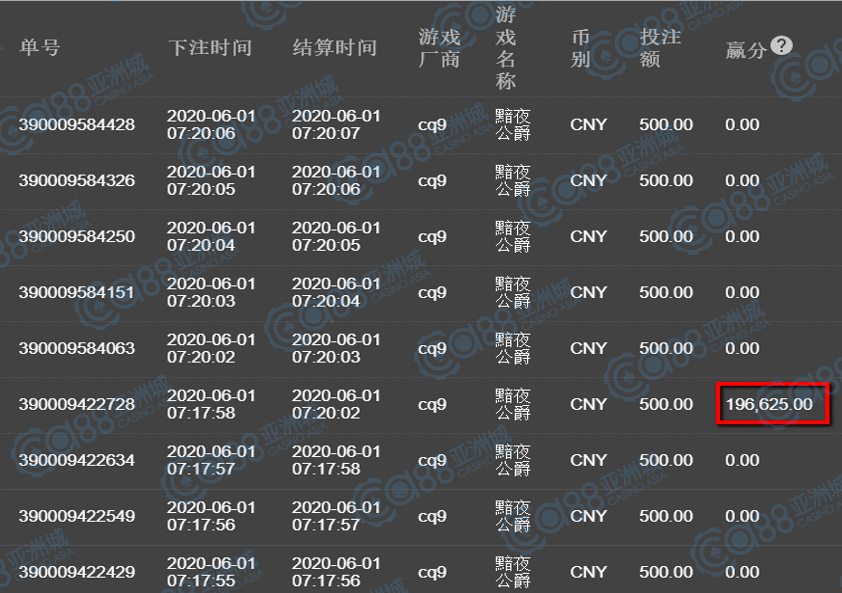 获奖情节: 再来看到第七名,除了其他场馆,CQ9的出奖率也是很高的,这款神秘的黯夜公爵也是一匹游戏里的黑马,除了神秘以外还带了点奢华,而获奖的小伙伴也是被这神秘感给吸引了吧,中了大奖真是恭喜您!
