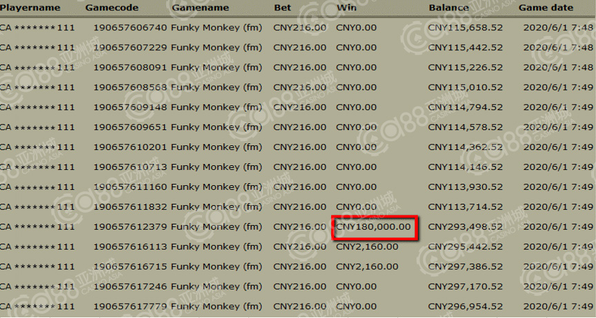 获奖情节:再来看到第8名,是由PT澳门馆的古怪猴子游戏中夺得!喜爱古怪猴子的玩家也是不少呢,以前的超大奖都是从猴子系列的游戏中出现的,不知造就了多少个赢家,小伙伴也请持续给这猴子游戏多点支持吧!