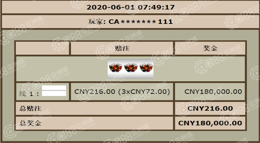 天气越来越热了,小亚的场子也是越来越热闹,中大奖的资讯特别的多,于是赶紧来跟小伙伴分享喜悦,希望中奖玩家越来越多!这人的运气要来真是挡不住的,小亚在此也祝小伙伴今年个个发大财,奖金数不完!